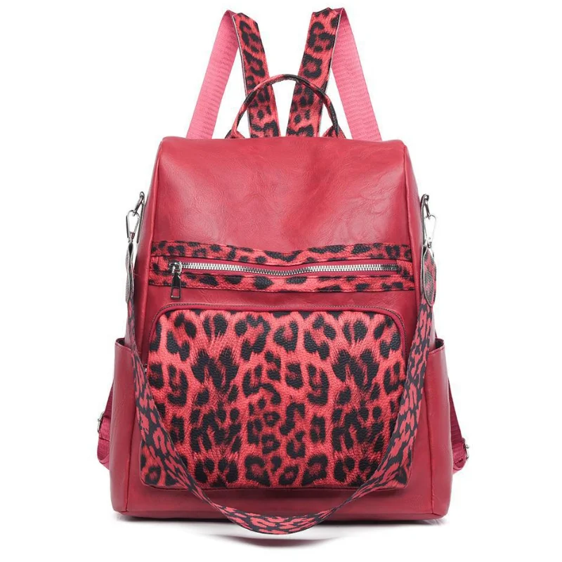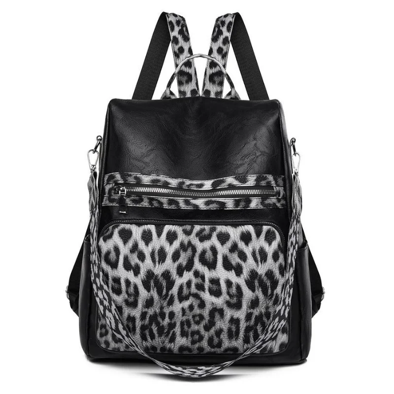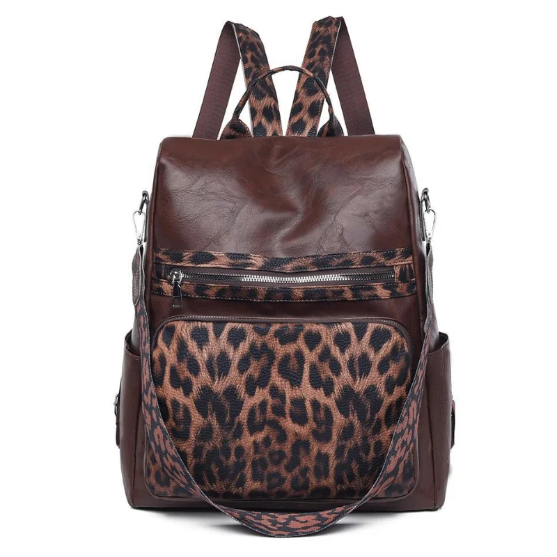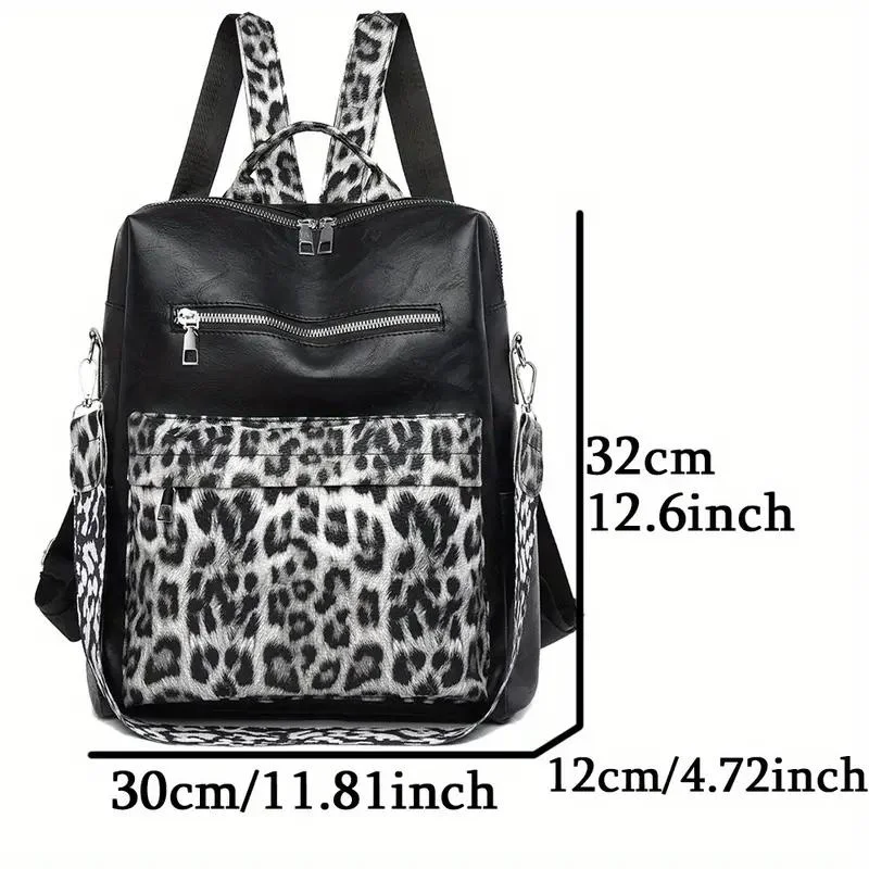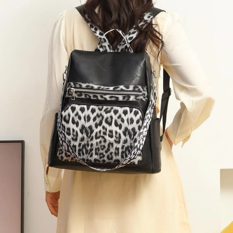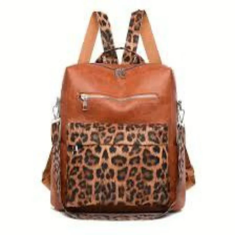 3-in-1 Vegan Leather Convertible Anti-Theft Backpack & Leopard Print Shoulder Bag