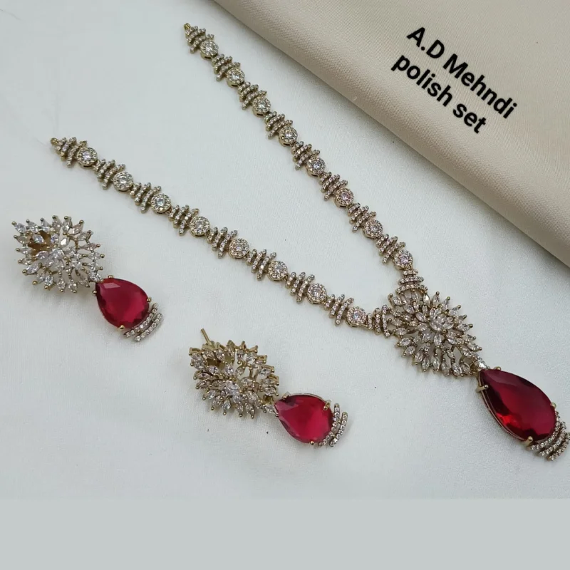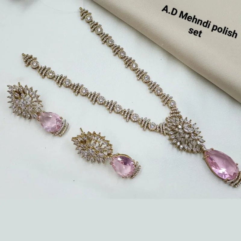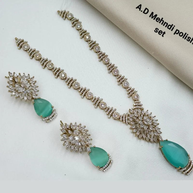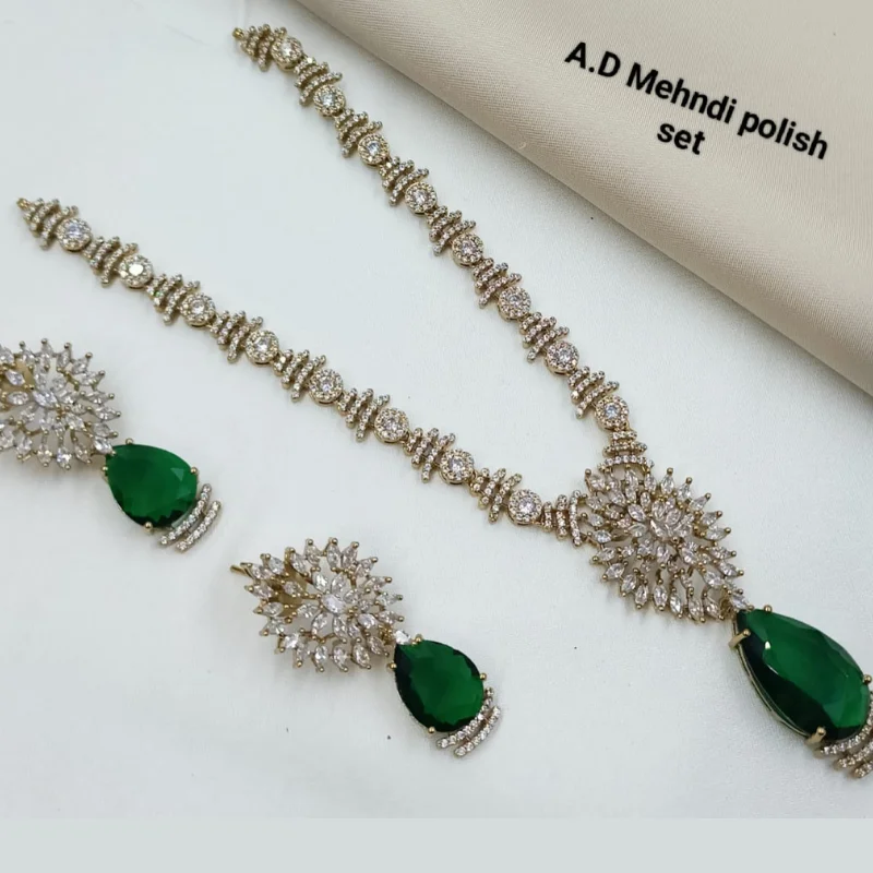 AD Stone Necklace & Earring Set with Mehndi Polish