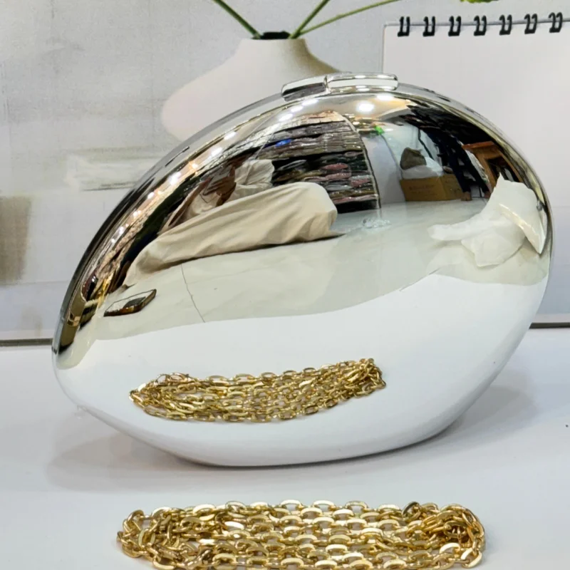 Avant-Garde Chrome “Pebble” Hard-Shell Clutch & Crossbody Bag