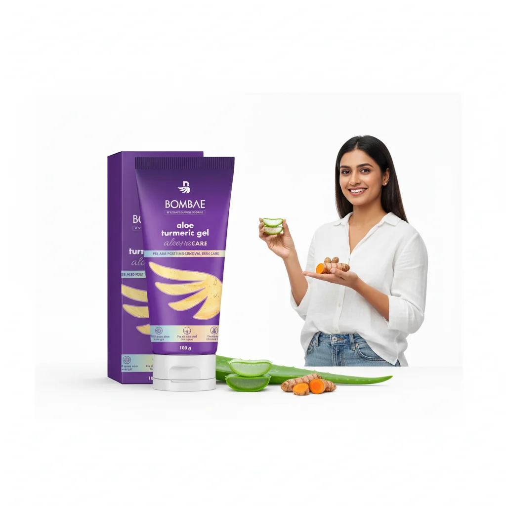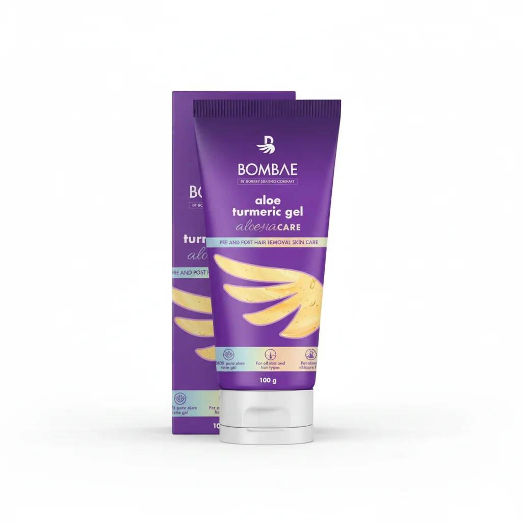 BOMBAE Aloe Turmeric Gel is a pre and post hair removal skin care product designed to soothe and nourish your skin. This 100g tube contains a unique blend of aloe vera and turmeric, known for their beneficial properties. The formulation aims to provide comprehensive skin care, making it suitable for both before and after hair removal routines.
