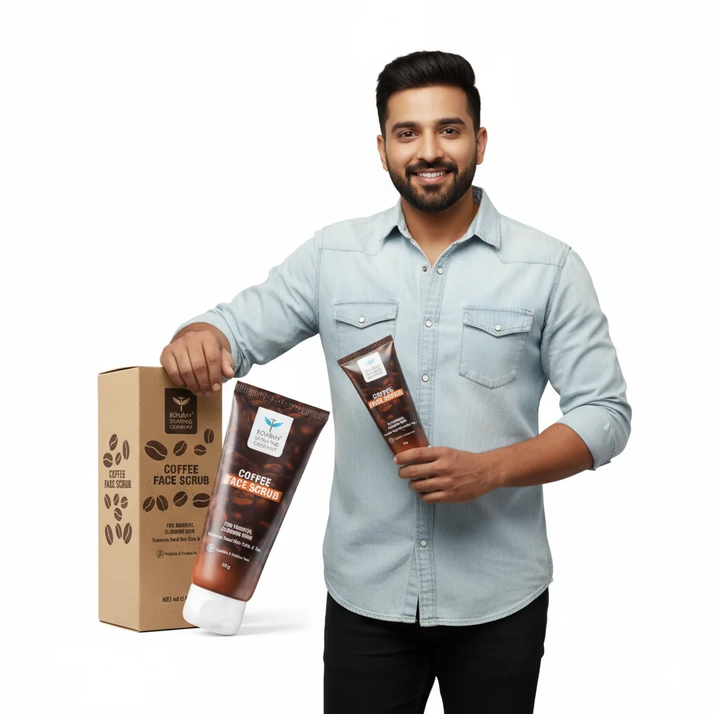 Coffee Face Scrub: Highlights coffee as the primary ingredient, suggesting natural exfoliation and antioxidant benefits.
