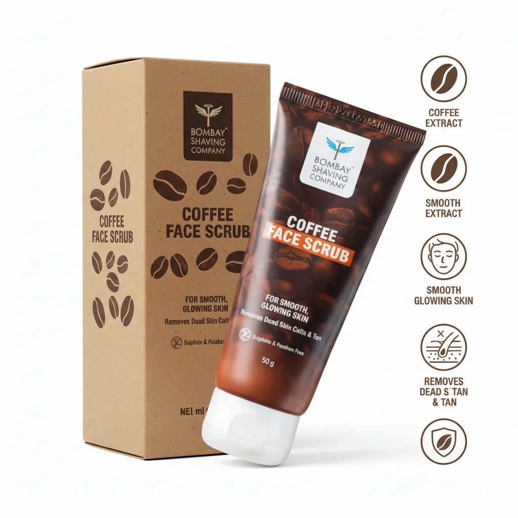 The Bombay Shaving Company Coffee Face Scrub is a 50g exfoliating product designed to achieve “Smooth, Glowing Skin.” It actively works to “Removes Dead Skin Cells & Tan,” leveraging the exfoliating power of coffee. This scrub is formulated to be “Sulphate & Paraben Free,” appealing to consumers who prefer products without these common additives. The packaging, with its coffee bean motif, clearly communicates the main ingredient and its invigorating benefits for skin revitalization.