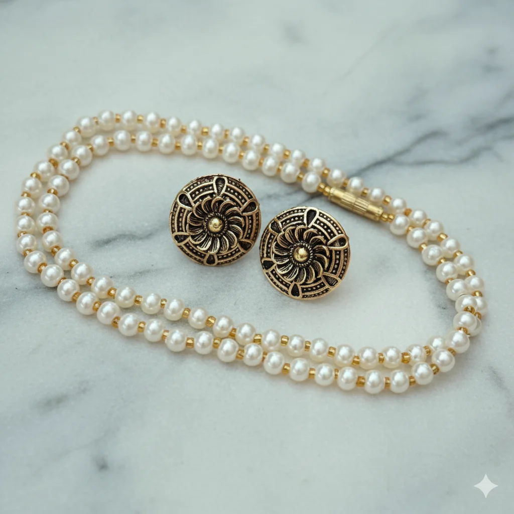 Full DescriptionAdd a touch of royal elegance to your wardrobe with this “Beautiful Combo” premium pearl jewelry set. Designed for