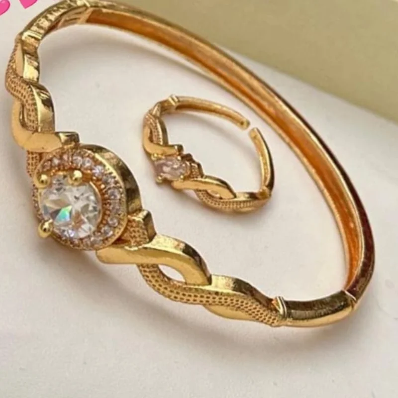 Add a touch of timeless sophistication to your jewelry box with this Premium Gold Plated Bracelet and Ring Combo. Designed for the modern woman who loves classic elegance, this set features a luxurious “American Diamond” look that sparkles brilliantly under any light.