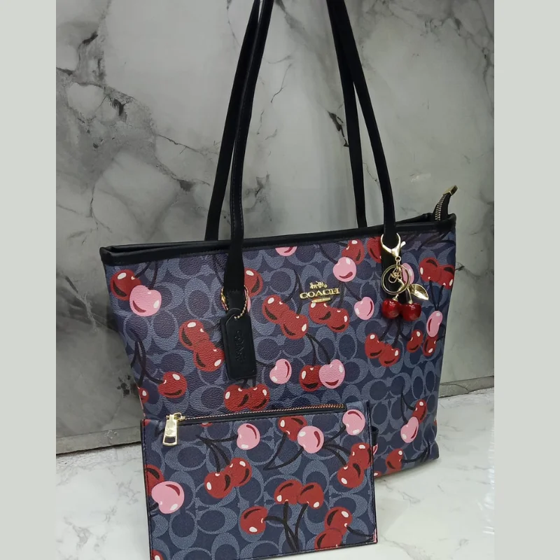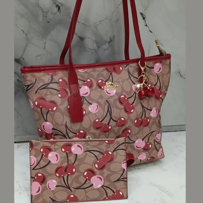 Coach City Tote Bag and Matching Wristlet Set in Heart Cherry Print