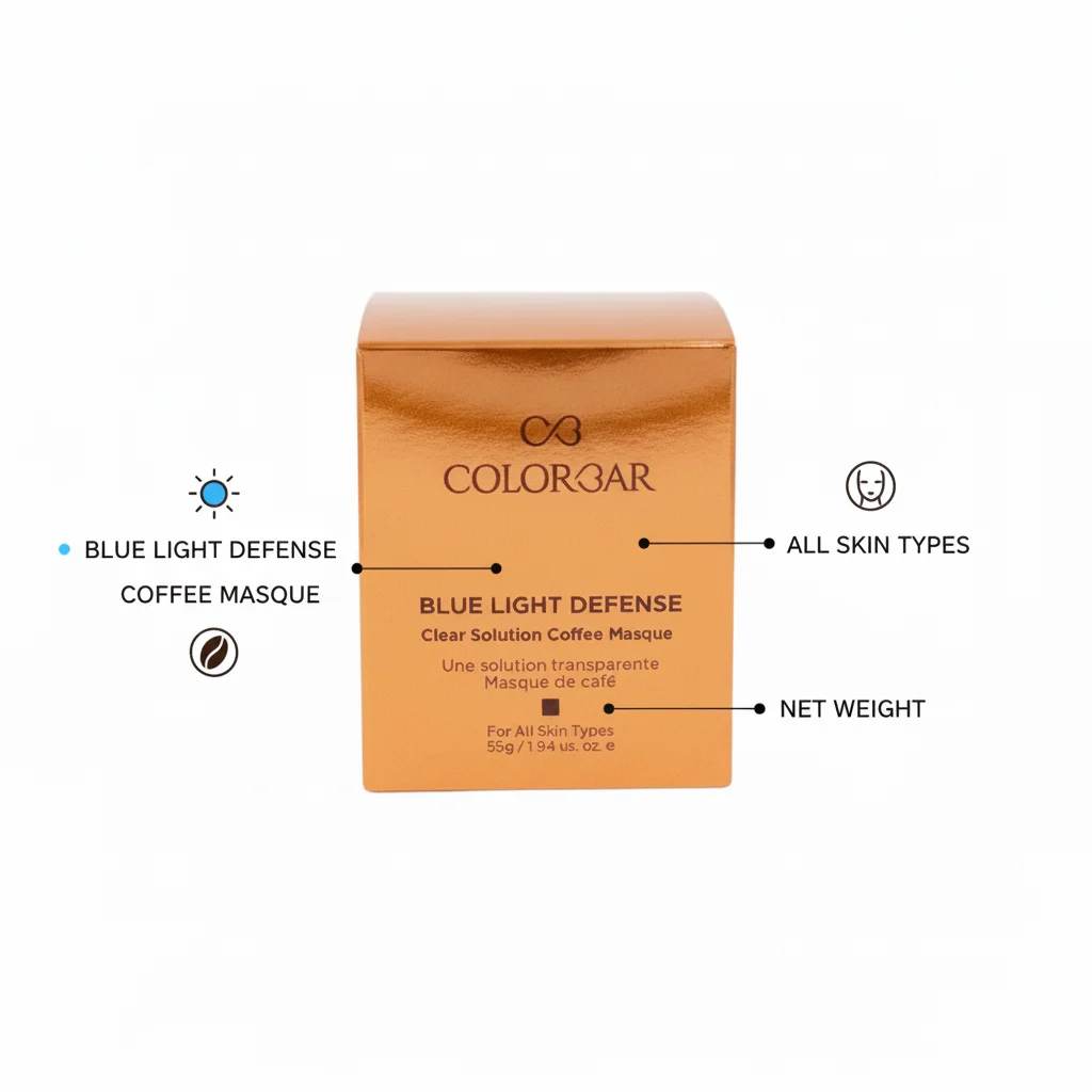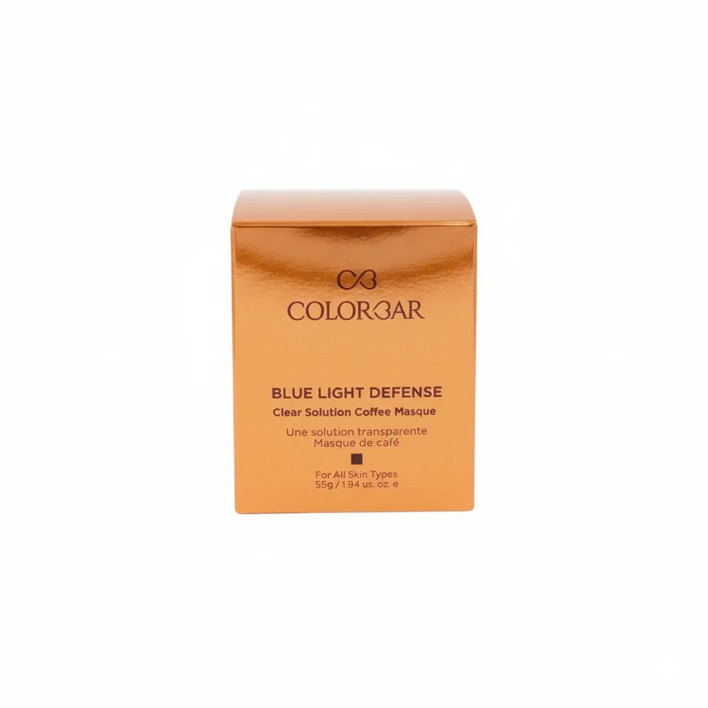 The COLORbAR Blue Light Defense Clear Solution Coffee Masque is a skincare product designed to protect the skin from the harmful effects of blue light exposure, often emitted from digital screens. This particular masque is described as a “Clear Solution” and infused with coffee, suggesting it may have invigorating and antioxidant properties. The product comes in a luxurious, metallic copper-colored box, indicating a premium offering. It is suitable “For All Skin Types” and contains 55g (1.94 US oz) of product. The bilingual description (“Une solution transparente Masque de café”) reinforces its clear nature and coffee ingredient. It is likely formulated to rejuvenate the skin, provide defense against environmental stressors, and possibly offer a brightening effect.