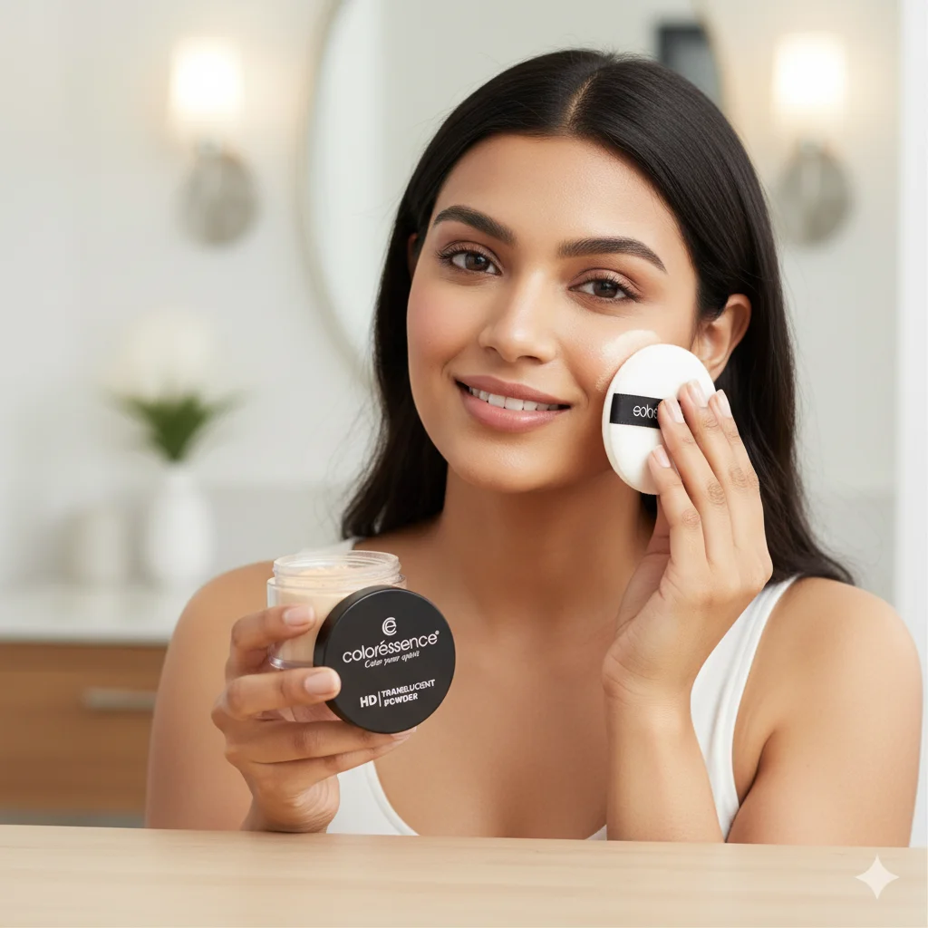 Loose Setting Powder: Sets liquid or cream makeup, extending wear and preventing creasing.
