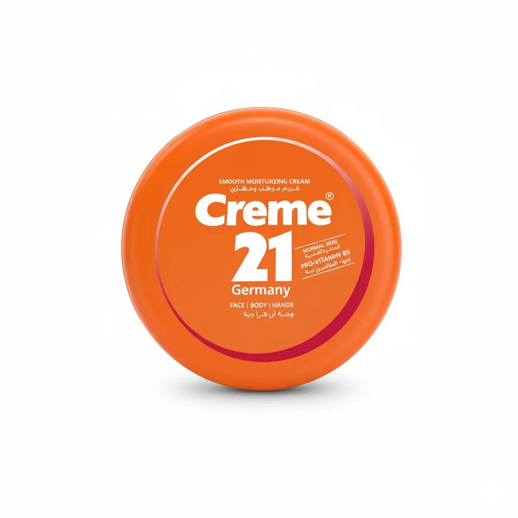Crème 21 Smooth Moisturizing Cream is a versatile skincare product enriched with Pro-Vitamin B5, designed to provide hydration and smoothness for the face, body, and hands. Originating from Germany, this cream is formulated to be easily absorbed, leaving the skin feeling soft and moisturized. The packaging also indicates that it is dermatologically approved, gentle on the skin, and free from microplastics.