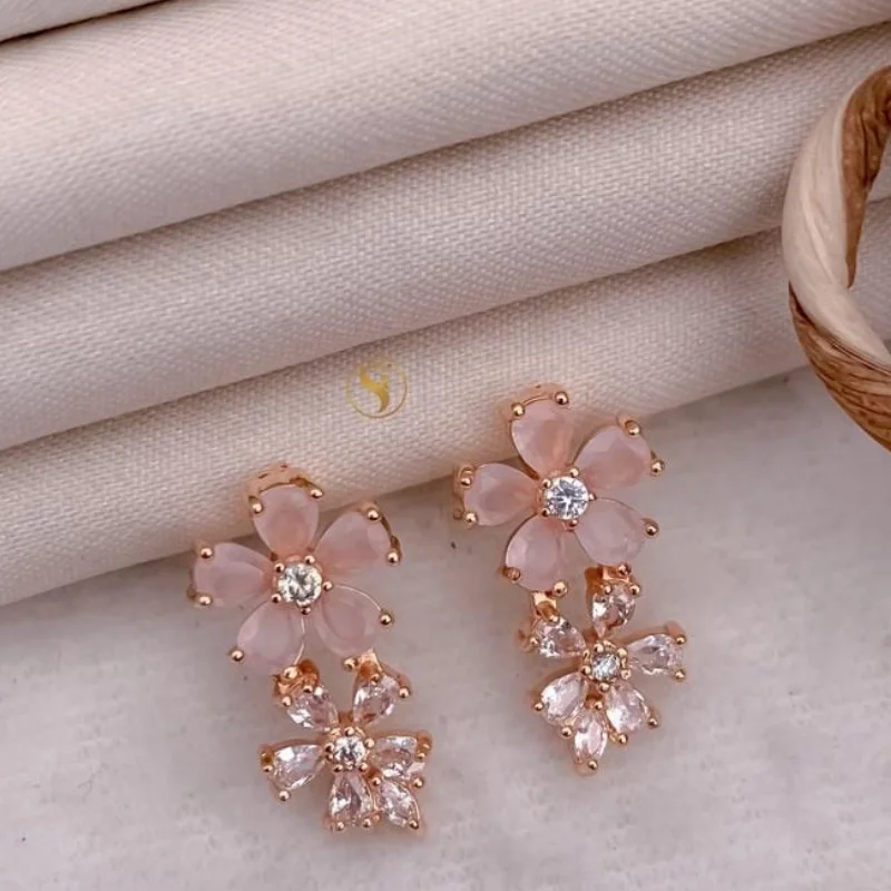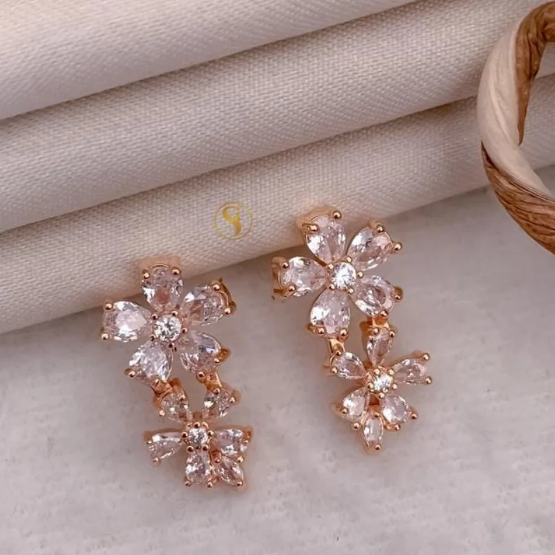 Full Description Elevate your jewelry collection with these exquisite Rose Gold Pearl & American Diamond Studs. These earrings are a perfect