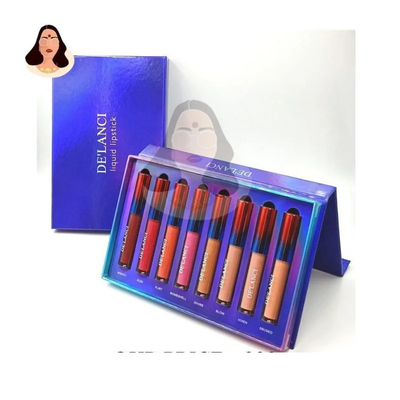 The DE’LANCI 8-Piece Matte Liquid Lipstick Set is a premium collection of highly pigmented lip colors designed to offer a velvety matte finish that lasts all day. Housed in a stunning blue holographic gift box, this kit features a versatile range of 8 distinct shades, from soft everyday nudes and playful pinks to bold reds and deep, sultry berries.