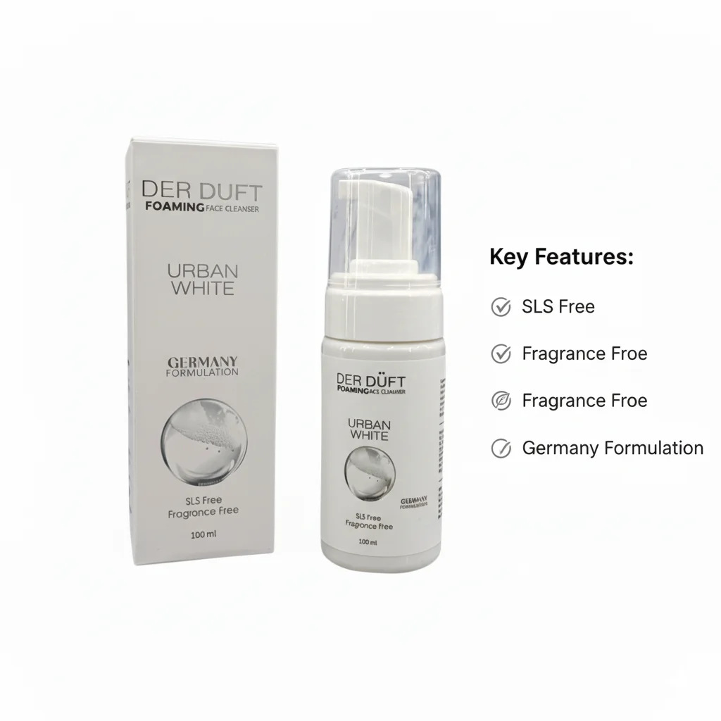 Discover a gentle yet effective cleanse with the DER DÜFT Urban White Foaming Face Cleanser. This thoughtfully formulated cleanser, crafted in Germany, is designed to purify your skin without harsh ingredients, making it ideal for those seeking a mild yet thorough cleansing experience. The luxurious foaming action effortlessly lifts away impurities, makeup, and daily grime, leaving your skin feeling clean, refreshed, and soft.