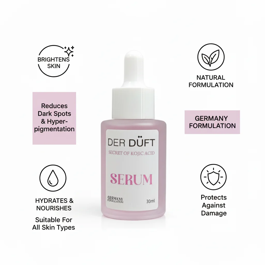 Designed for all skin types, this lightweight and fast-absorbing serum delivers a concentrated dose of active ingredients to target common skin concerns, promoting a luminous and clarified complexion. With regular use, the DER DÜFT Kojic Acid Serum helps to reveal a smoother, more refined skin texture and a youthful glow. Each 30ml bottle is testament to German precision in skincare, offering a premium experience for those seeking visible results.
