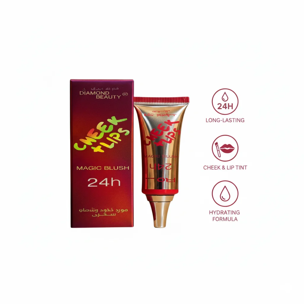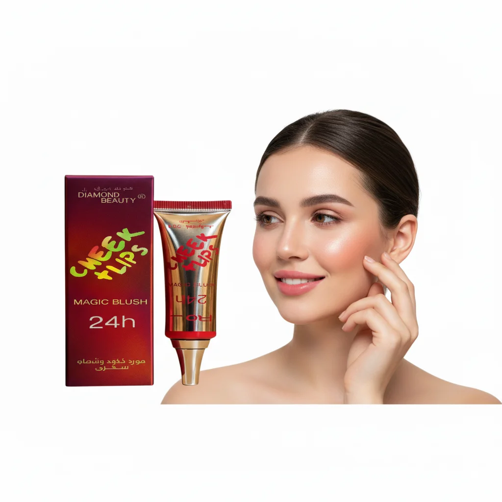 The Diamond Beauty Cheek & Lips Magic Blush offers a versatile pop of color for a radiant, long-lasting look. This innovative 2-in-1 product is designed to add a natural-looking flush to both your cheeks and lips, simplifying your makeup routine. Its creamy, blendable formula is crafted to provide a vibrant yet buildable tint that can be customized from a subtle glow to a more defined look.
