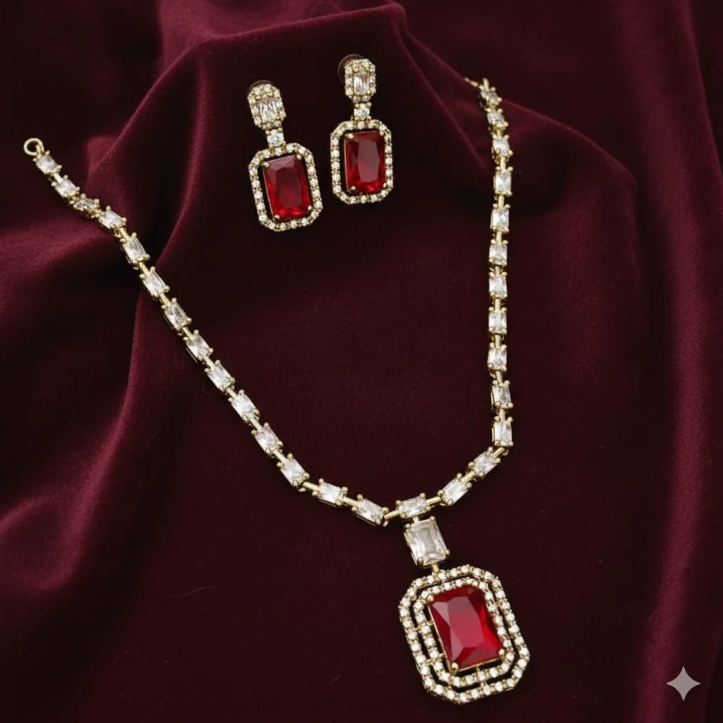 Tags: American Diamond jewellery, classic jewellery, gift for her, jewellery set, necklace set, partywear jewellery, women gift idea