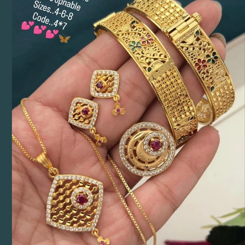 • Complete 5-Piece Combo: Includes 1 Square-Design Pendant with Chain, 1 Pair of Matching Square Earrings, 1 Round Statement Ring, and 2 Wide Openable Bangles.