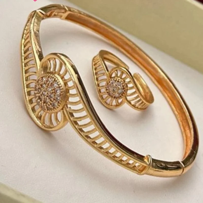 2-Piece Set: Includes 1 Designer Hinged Bracelet (Bangle) and 1 Matching Ring.