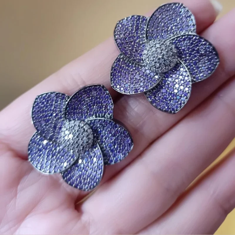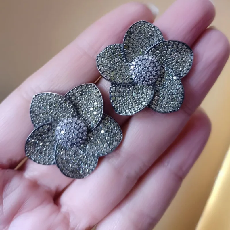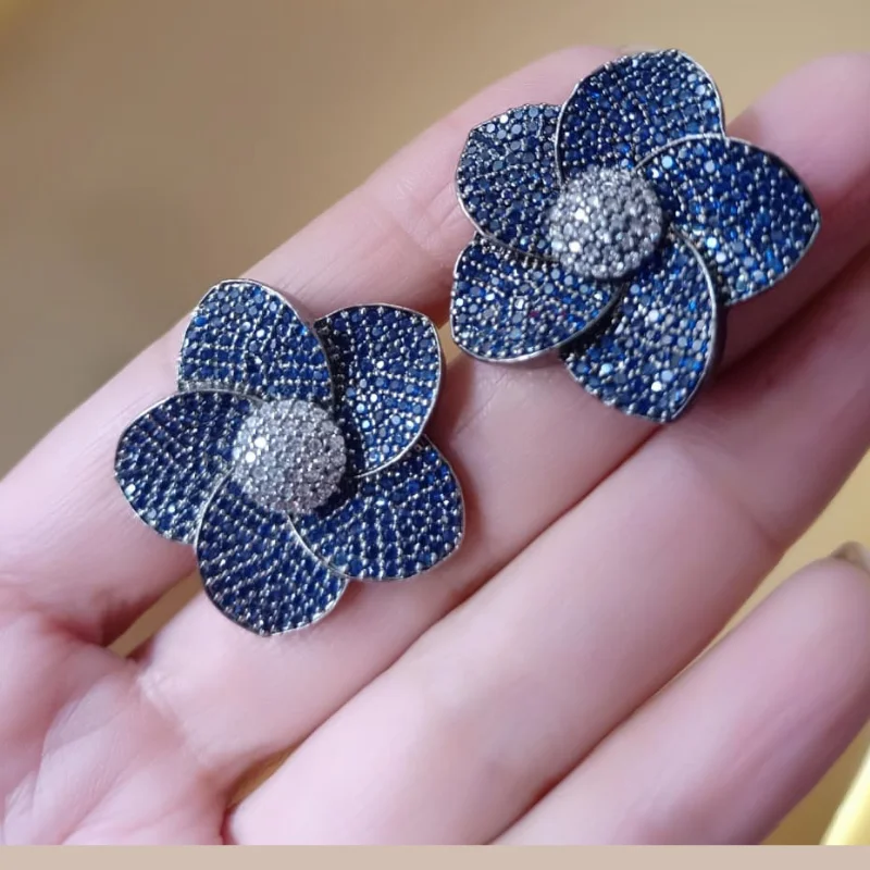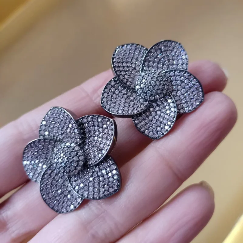 Elegant Pave-Set Champagne Crystal Flower Stud Earrings