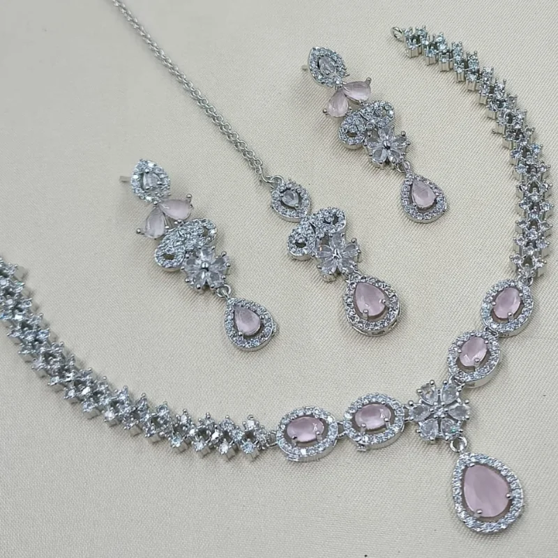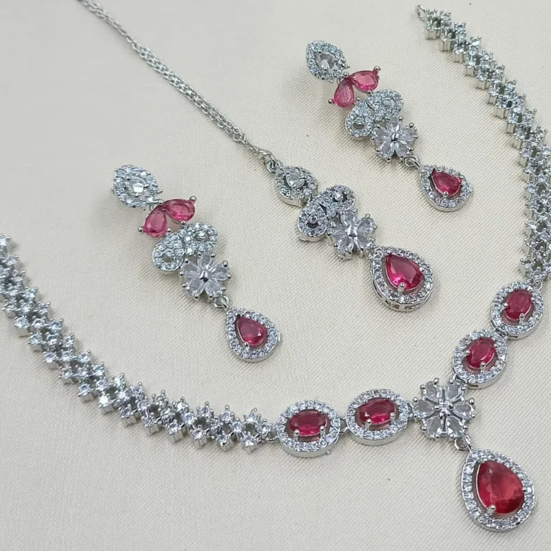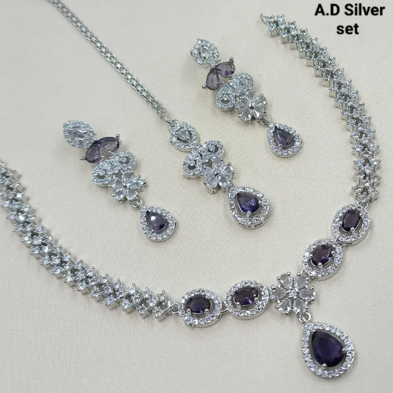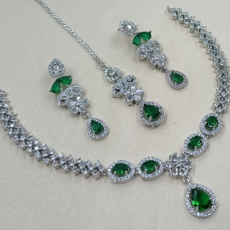 Elegant Silver-Plated & American Diamond Floral Jewelry Set