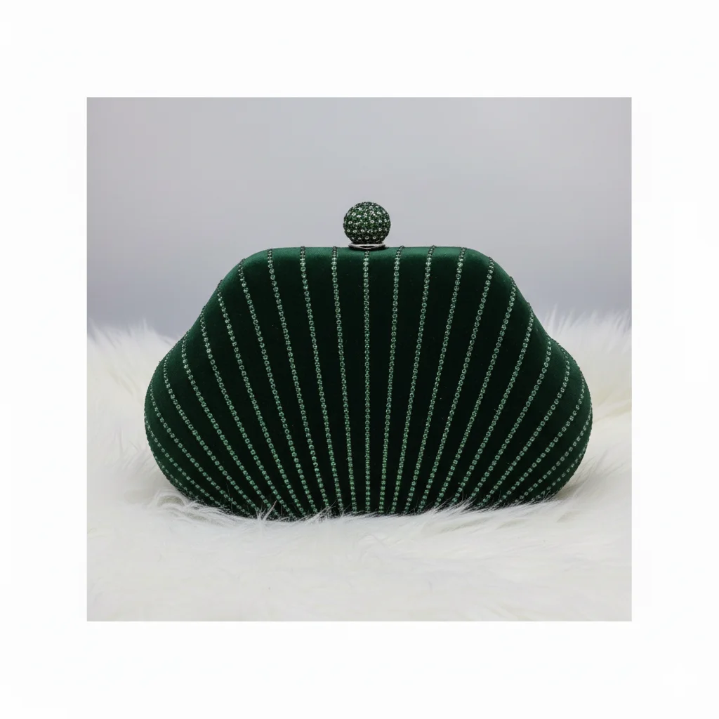 Elegant Velvet & Rhinestone Pinstripe Hard-Shell Evening Clutch