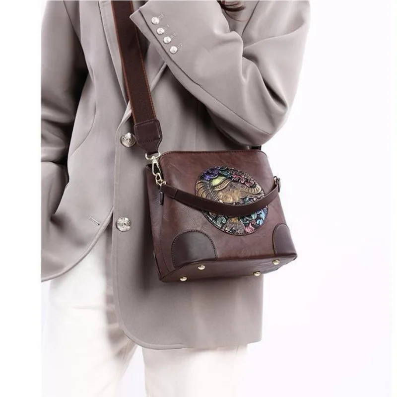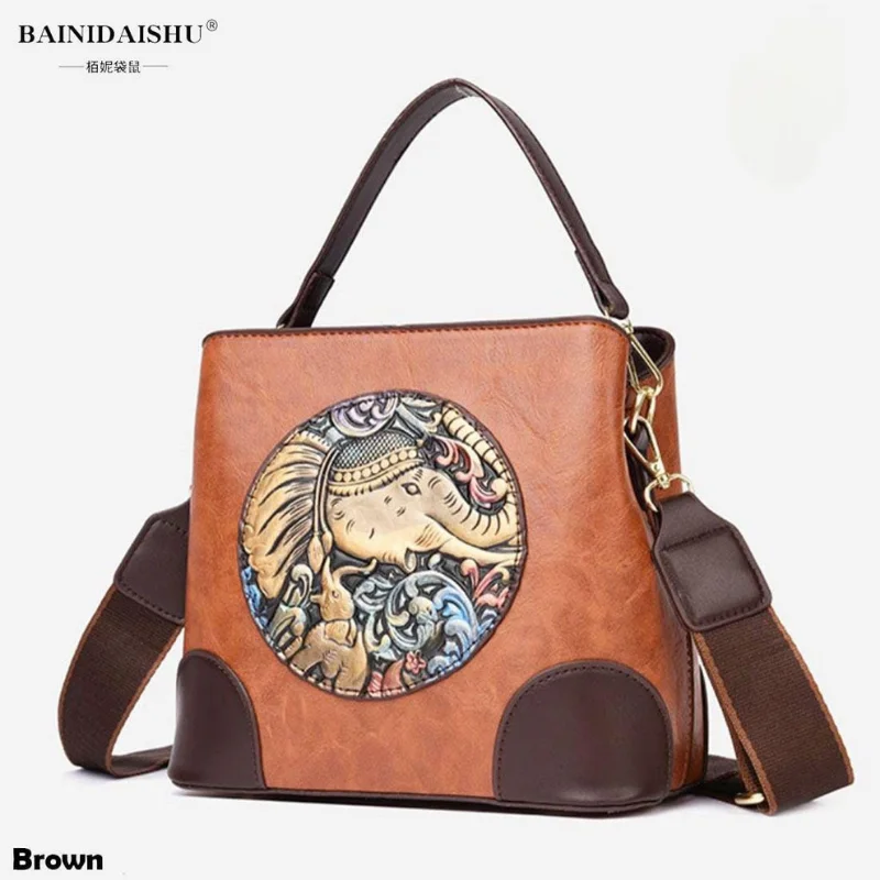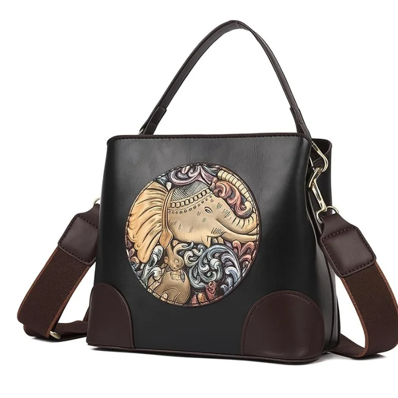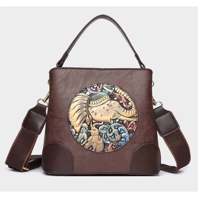 Embossed Elephant and Calf PU Leather Bucket Bag