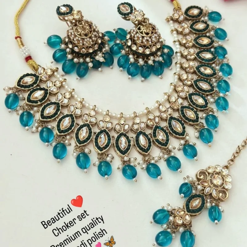 Tags: choker set, classic jewellery, jewellery set, necklace set, partywear jewellery, Tikka set