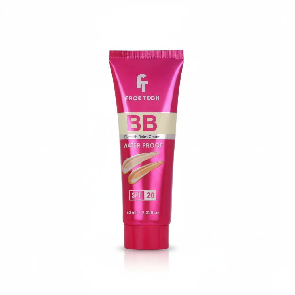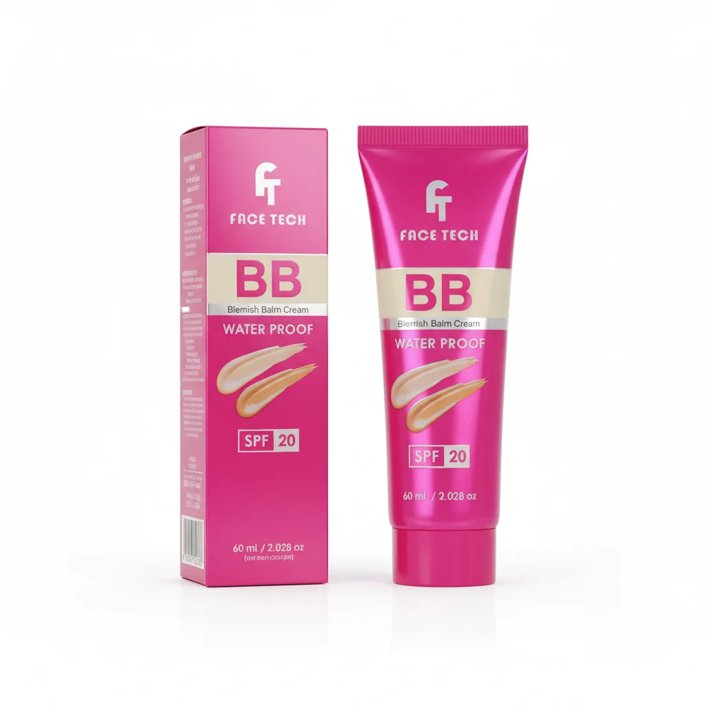 It is a waterproof blemish balm cream with SPF 20, designed to provide coverage while offering sun protection. The packaging indicates it comes in a vibrant pink box and tube, suggesting a modern and potentially feminine-focused product. The inclusion of two swatches on the packaging implies it might be available in at least two different shades, likely catering to fair to medium skin tones. The product contains 60 ml / 2.028 oz of cream.