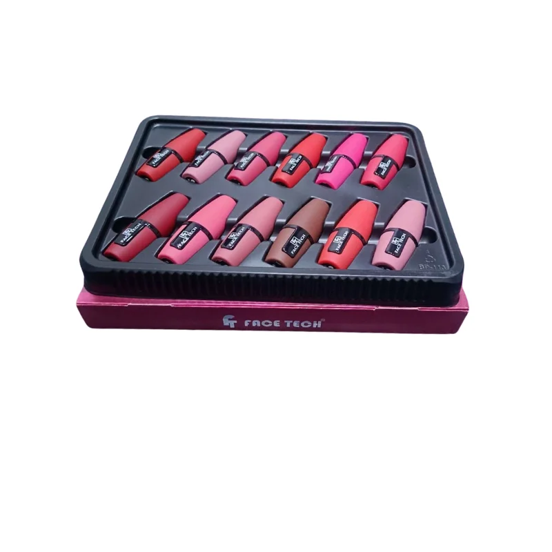 Branded Product: Clearly identified as “FACE TECH” brand, visible on the packaging and individual lipsticks.