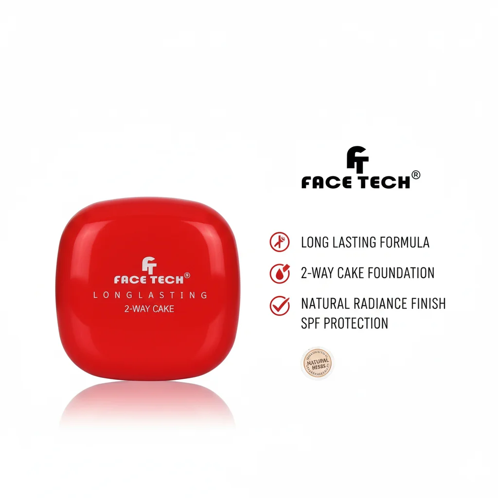 Achieve a flawless and enduring complexion with the FACE TECH Longlasting 2-Way Cake Foundation. This versatile product acts as both a foundation and a setting powder, offering buildable coverage that can be applied wet for a full, matte finish or dry for a lighter, natural look. Its advanced long-lasting formula ensures your makeup stays perfect throughout the day, resisting fading and smudging. Infused with beneficial ingredients, this 2-Way Cake helps to even out skin tone, conceal imperfections, and provide a smooth, velvety texture. Presented in a vibrant red compact with a complementary red and white box, it’s designed for convenience and elegance, making it an essential item for any beauty enthusiast seeking durability and versatility in their makeup.