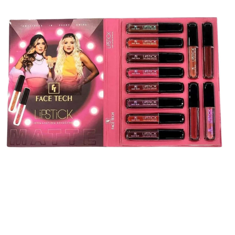 Elevate your lip game with the Face Tech Matte Long-Lasting Liquid Lipstick Collection, a stunning set featuring 12 vibrant and richly pigmented shades. This luxurious collection is designed for the modern individual who desires bold color, exceptional comfort, and incredible longevity. Each lipstick glides on smoothly, delivering an opaque, matte finish that stays put for hours without feathering, smudging, or drying out your lips.