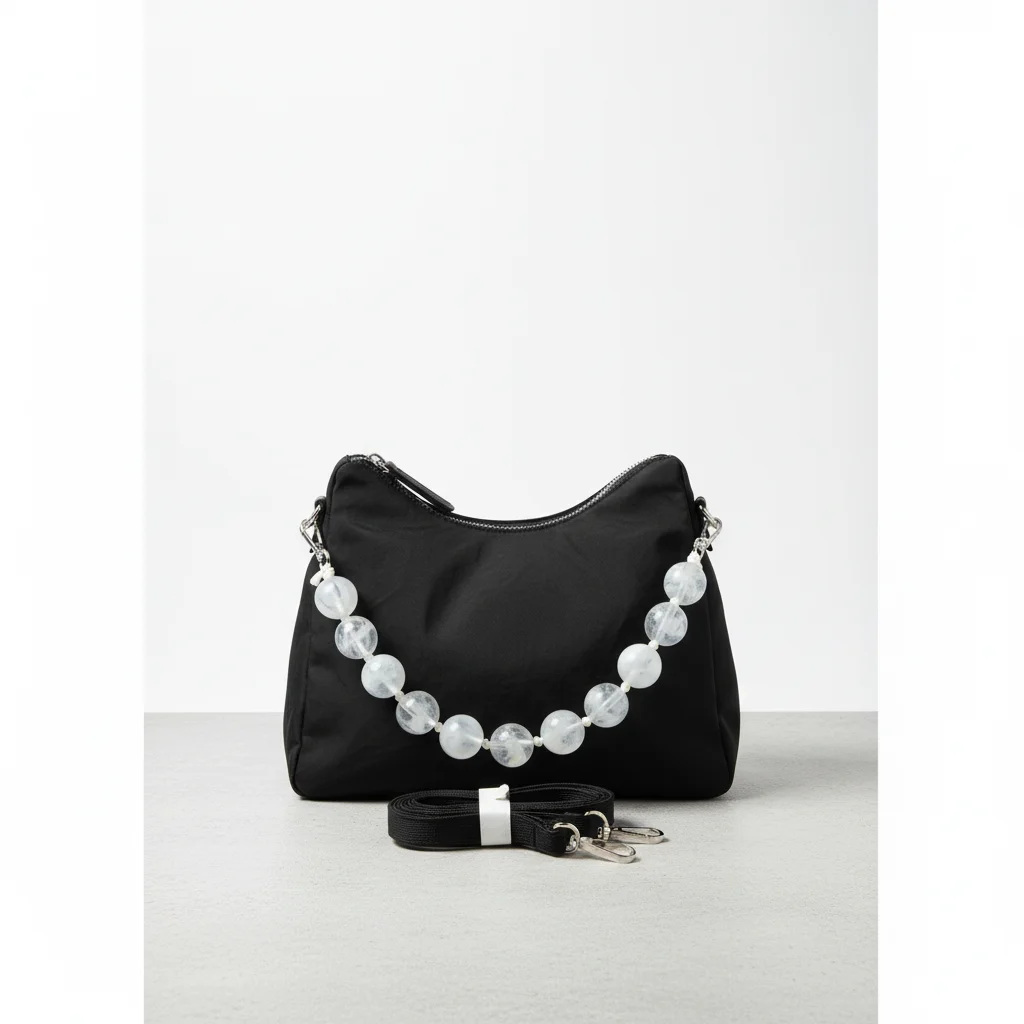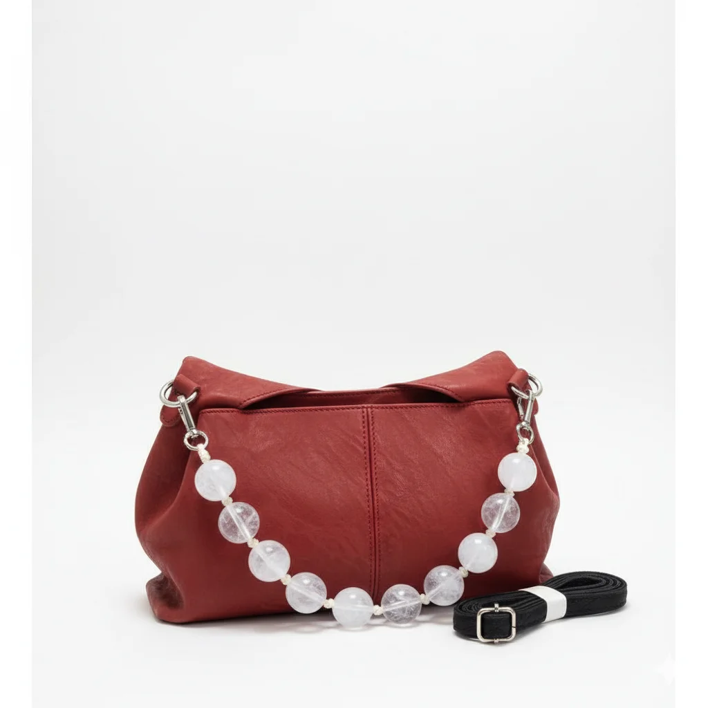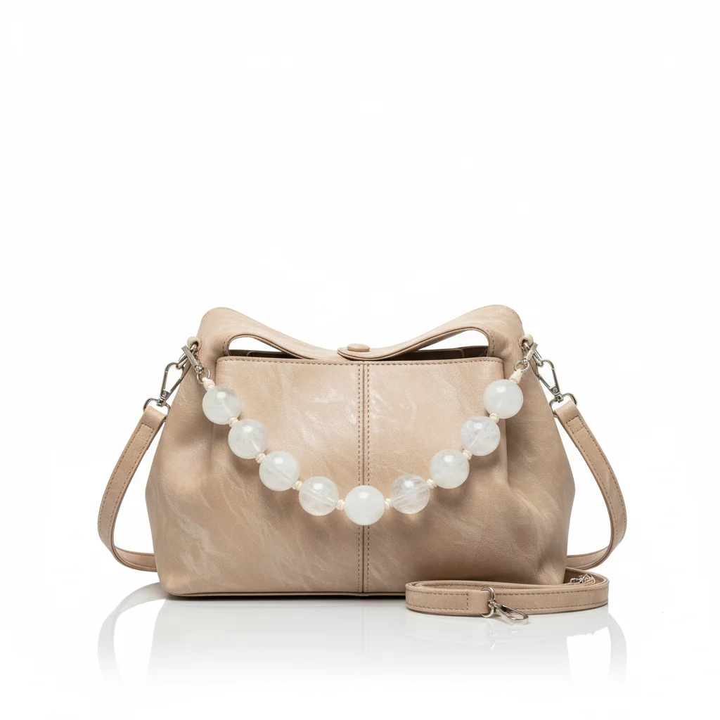 Faux Leather Crossbody Bag with Statement Frosted Bubble Bead Handle