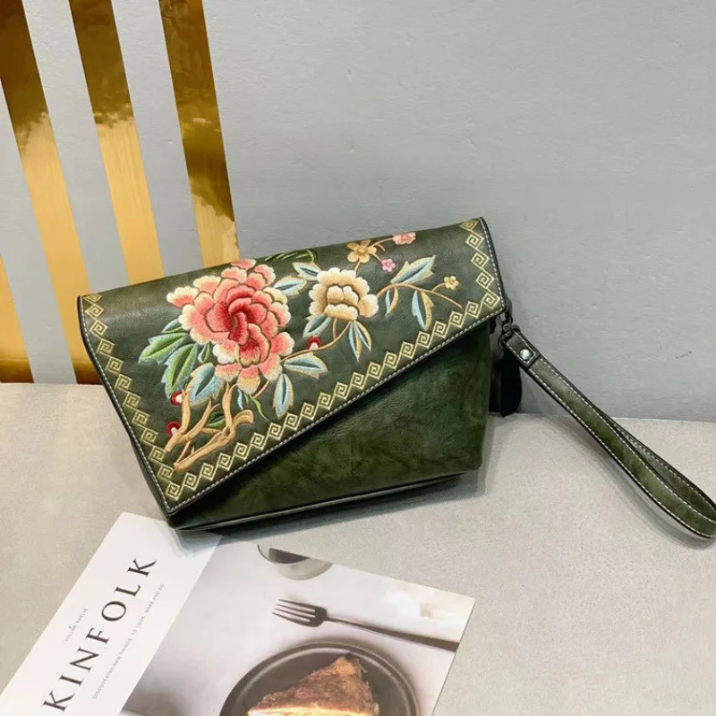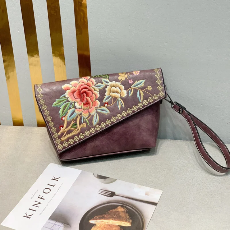 Floral Embroidered Asymmetrical Clutch & Wristlet Set