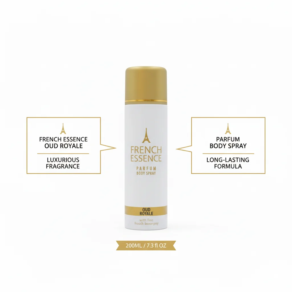 Indulge in the opulent and captivating aroma of French Essence Oud Royale Parfum Body Spray. This luxurious body spray, presented in a sleek white and gold bottle, offers a sophisticated and long-lasting fragrance experience. Inspired by the rich and exotic notes of Oud, “Oud Royale” evokes a sense of grandeur and elegance. The accompanying white and gold packaging further enhances its premium appeal, making it an ideal choice for those who appreciate fine fragrances. With a generous volume of 200ml (7.93 fl oz), this parfum body spray ensures you stay enveloped in its distinguished scent throughout the day. It’s designed to provide a refreshing burst of fragrance that leaves a memorable trail, perfect for both everyday wear and special occasions.
