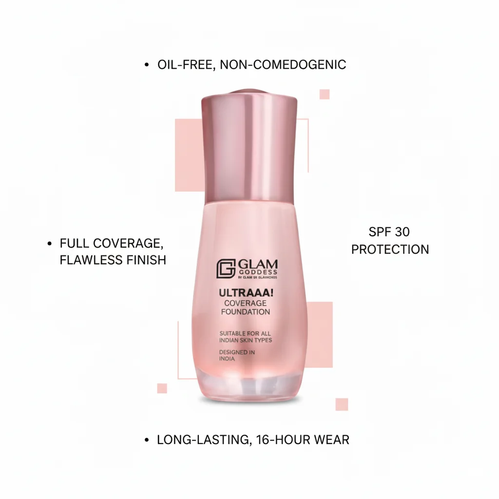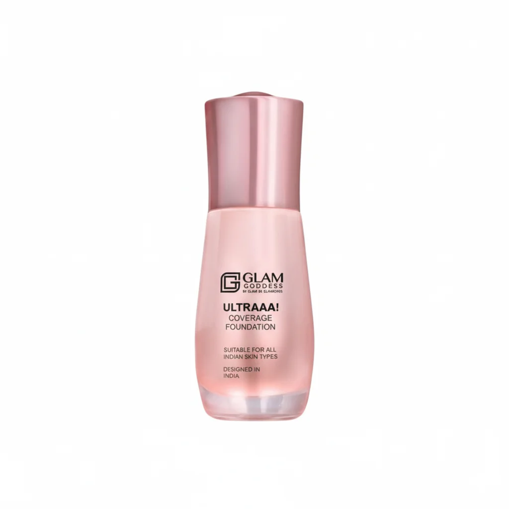 The Glam Goddess Ultraaa! Coverage Foundation is a high-performance liquid foundation specifically formulated to provide exceptional coverage for a flawless complexion. Designed in India and “Suitable for all Indian skin types,” this foundation aims to address the diverse needs of the Indian demographic. Its “Ultraaa!” designation implies a powerful, full-coverage formula that effectively conceals imperfections, blemishes, and uneven skin tone, leaving a smooth and even finish. The elegant pink-toned bottle with a rosy metallic cap suggests a sophisticated and feminine product, promising to enhance natural beauty while offering robust coverage.