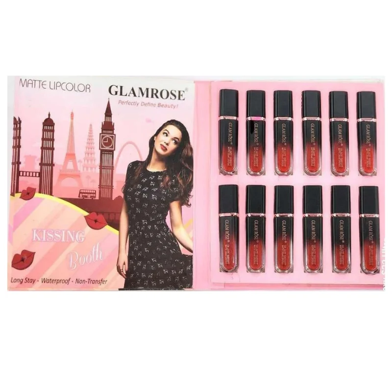 “Perfectly Define Beauty!” with the GLAMROSE Kissing Booth Matte Lipcolor Set. This alluring collection features 12 exquisite matte liquid lipcolors, designed to provide a rich, vibrant, and long-lasting finish that truly defines your look. Each lipcolor is formulated to offer an impressive “Long Stay” performance, ensuring your pout remains flawless for hours on end.