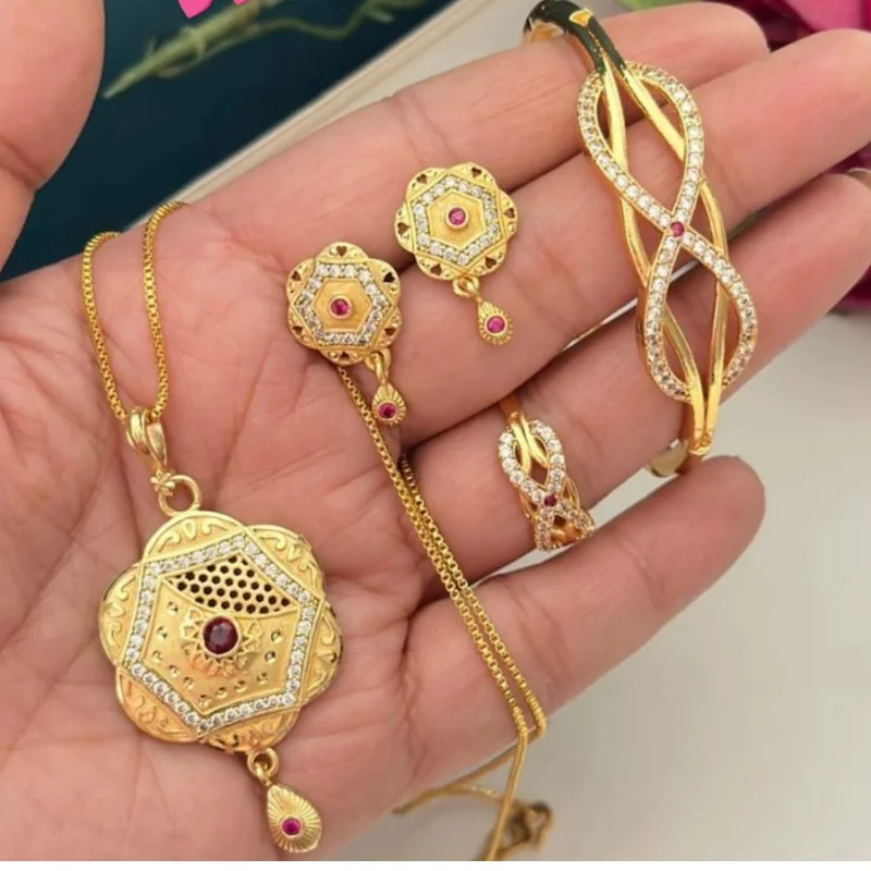 Complete 4-Piece Combo: Includes 1 Pendant with Chain, 1 Pair of Drop Earrings, 1 Bangle, and 1 Ring.