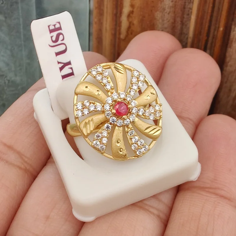• Vibrant Red Focal Stone: A brilliant round-cut red stone at the center adds a sophisticated pop of color and luxury.