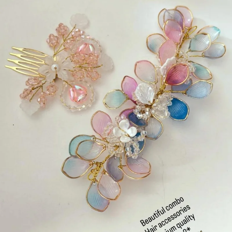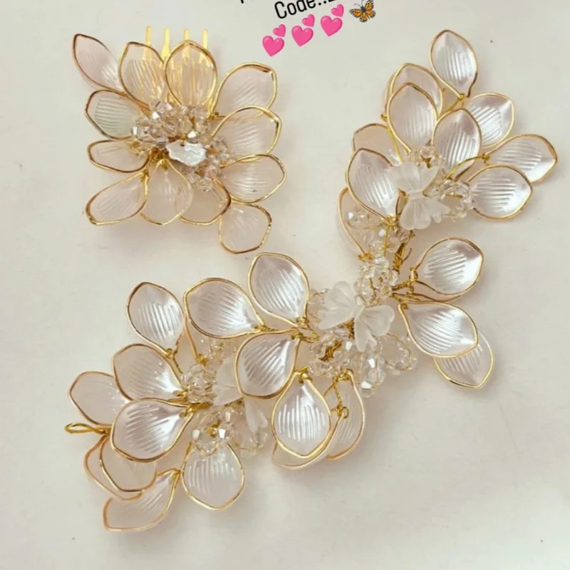 Handcrafted Pearlescent Iridescent Floral Hair Accessory Set