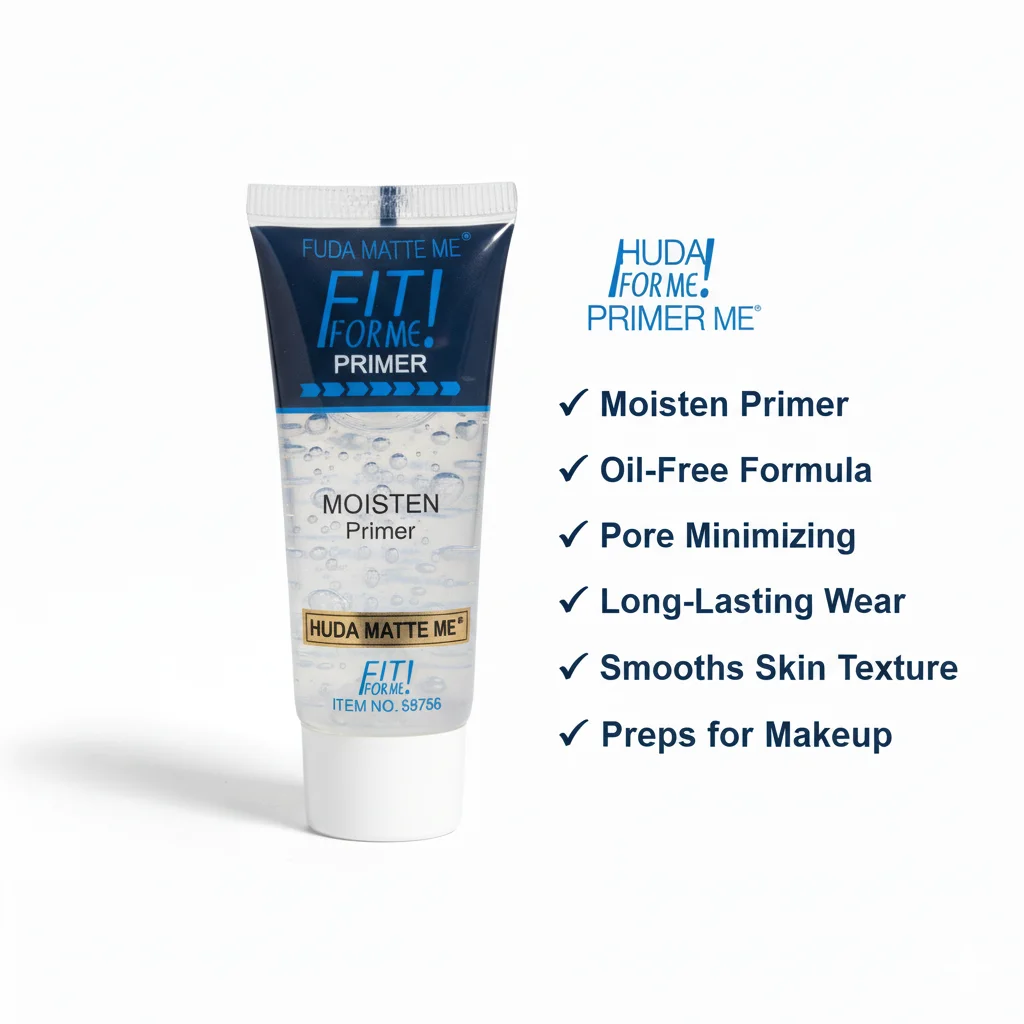 Prepare your skin for a flawless makeup application with the Huda Matte Me Fit For Me Moisten Primer. This hydrating primer is designed to create a smooth, moisturized base, ensuring your makeup glides on effortlessly and lasts longer. The “Moisten Primer” formula focuses on providing essential hydration to the skin, helping to plump and smooth its surface for a more even texture. While named with “Matte Me,” its primary function appears to be moisturizing, which can still contribute to a better matte finish by preventing excess oil production due to dryness. It helps to minimize the appearance of pores and fine lines, creating a perfect canvas that allows your foundation to look fresh and natural. Ideal for all skin types, especially those needing an extra boost of hydration before makeup, this primer ensures a comfortable and long-wearing makeup look.