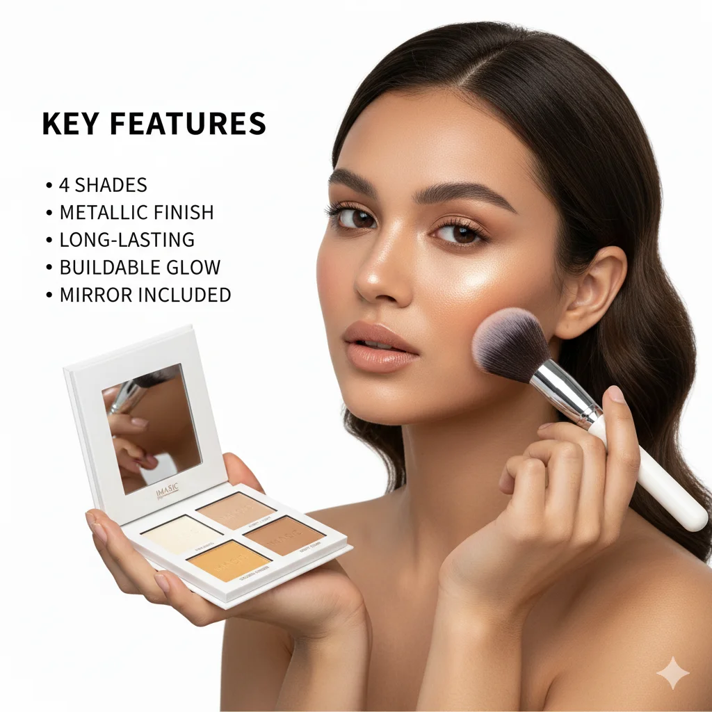 Full Description:The Magic Colour Highlighter Palette in “Light Up The Stars” (Shade 04) is a sophisticated makeup product designed to