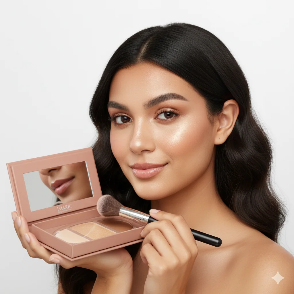 Shades: 3 elongated oval pans, likely containing a range of highlighting and soft contouring/bronzing powders.