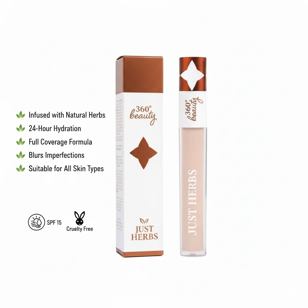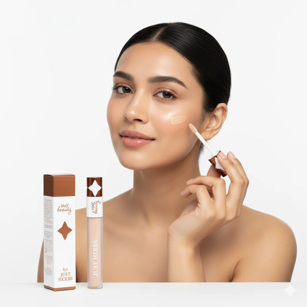 This Just Herbs concealer offers a clean, lightweight, and full-coverage solution to brighten and correct the complexion. It is designed to effectively hide fine lines, wrinkles, dark spots, redness, and acne marks without any cakiness or creasing. The creamy, easy-to-blend formula also helps in minimizing the appearance of pores for a filter-like finish. It promises a long-lasting, 12-hour, fade-proof, and crease-resistant wear, ensuring a flawless look throughout the day. The product is non-comedogenic, making it suitable for all skin types as it does not clog pores. Infused with skin-loving ingredients like Mango Butter, Liquorice Root, and Kumkumadi Oil, it not only conceals but also keeps the skin hydrated and fresh. This Ayurvedic concealer is vegan, cruelty-free, and formulated without parabens and silicones. It is available in multiple skin-adjusting shades to conceal, brighten, and color-correct, leaving the skin nourished on the inside and flawless on the outside.[1]