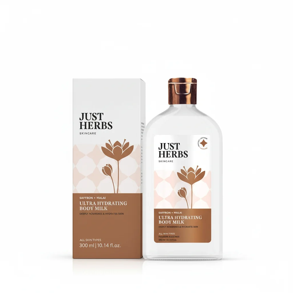 Indulge your skin in a luxurious and deeply nourishing experience with Just Herbs Saffron + Malai Ultra Hydrating Body Milk. This Ayurvedic-inspired body milk is formulated to provide deep nourishment and hydration, leaving your skin feeling incredibly soft, supple, and radiant.