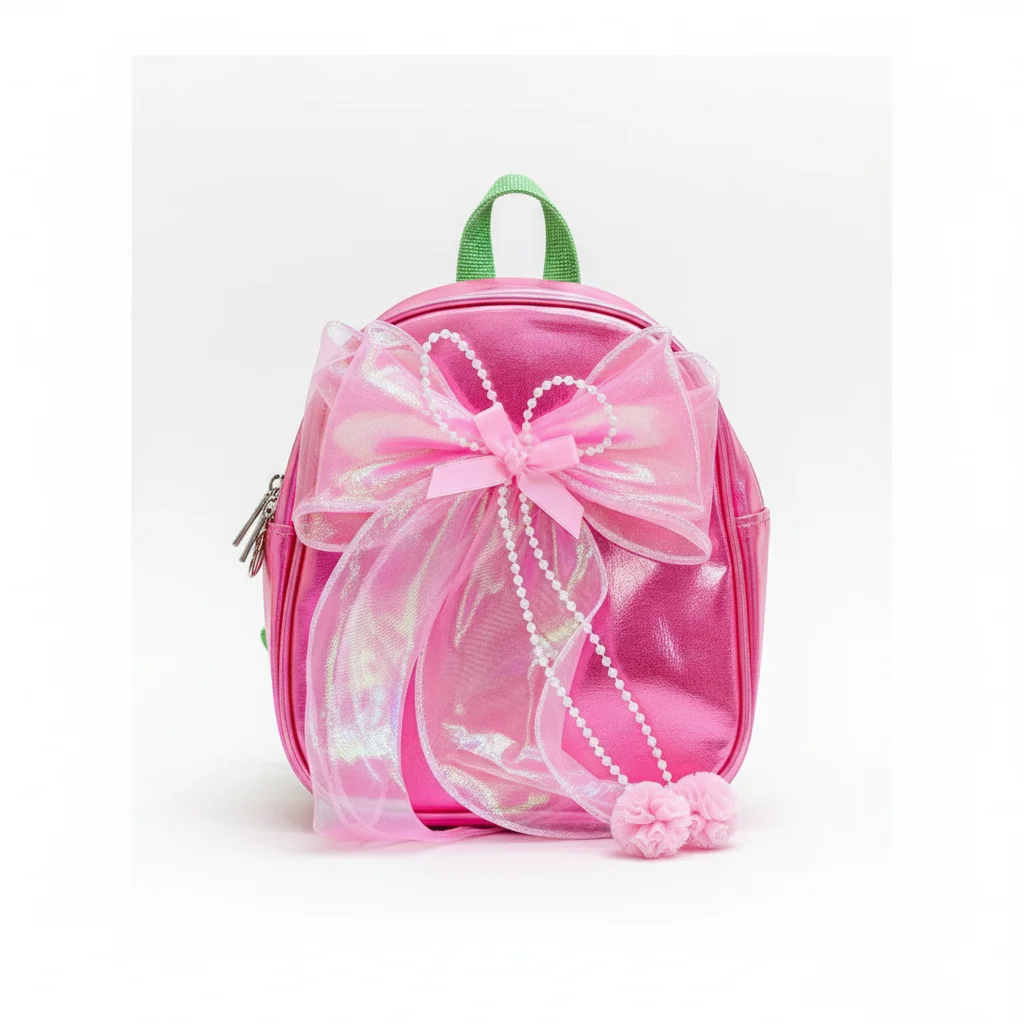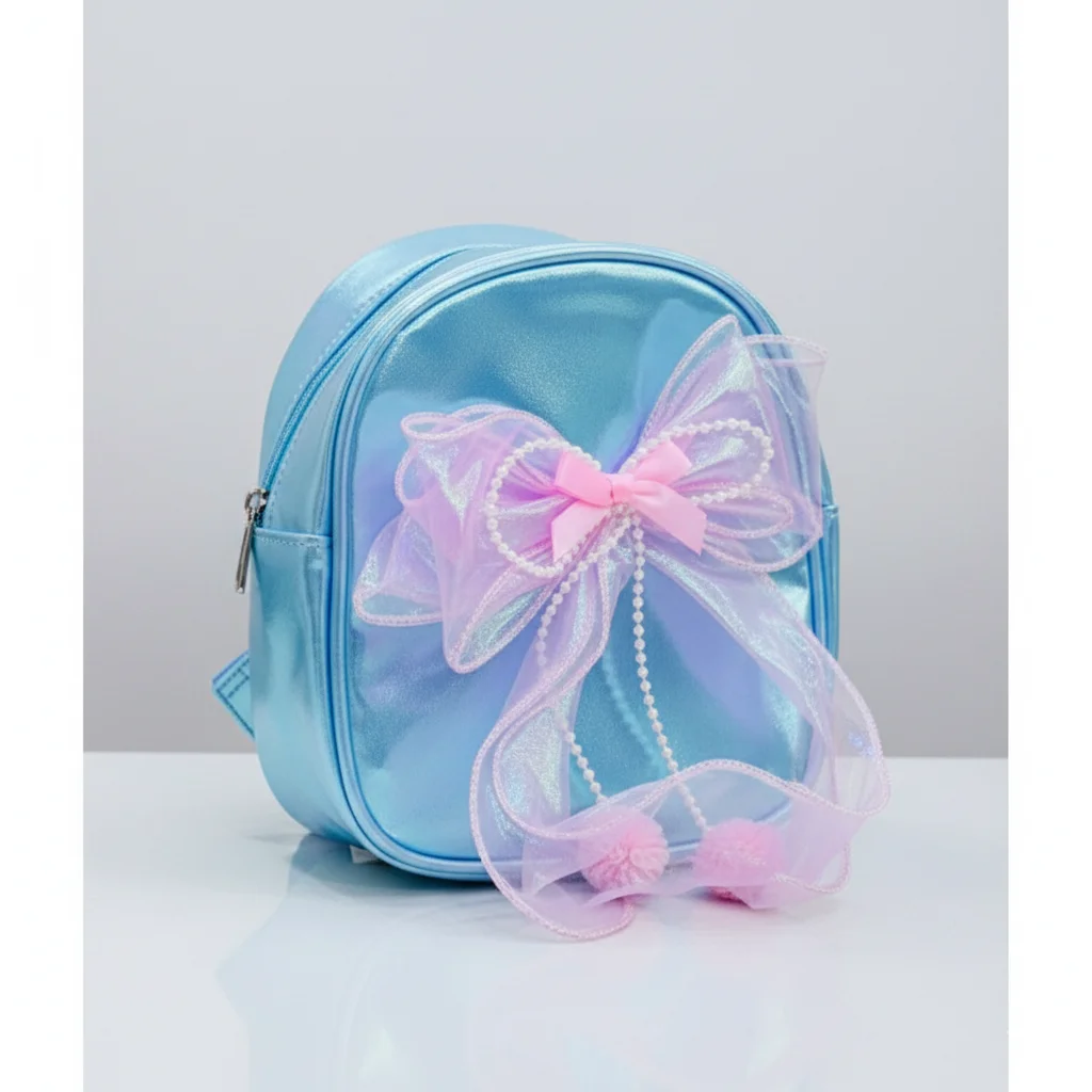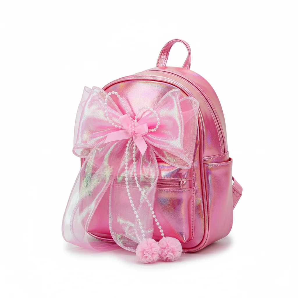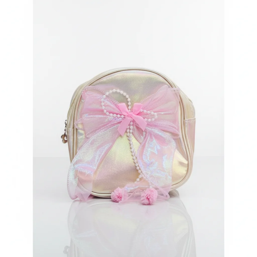 Kawaii Holographic “Dream Princess” Mini Backpack with Oversized Organza Bow & Pearl Accents