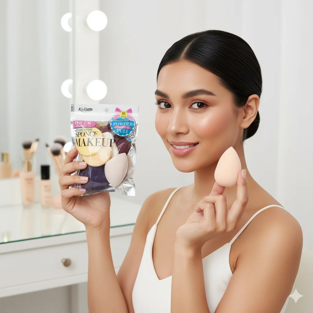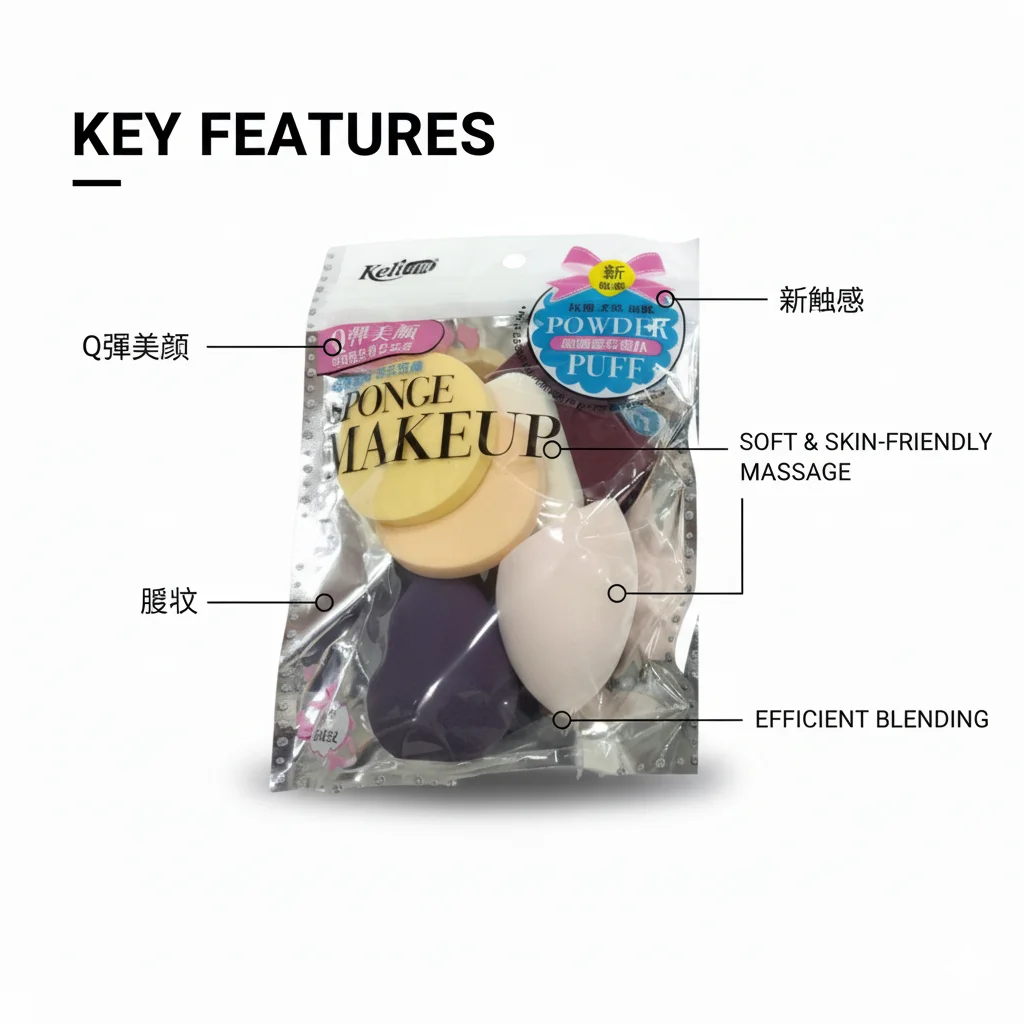 Full Description: This product features a set of three “PAORA SBR Makeup Sponges” or powder puffs, individually packaged in clear