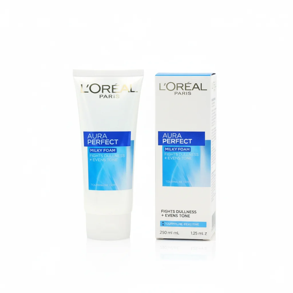 Achieve a luminous and even complexion with L’Oréal Paris Aura Perfect Milky Foam, a daily facial cleanser designed to combat dullness and purify the skin. This gentle yet effective foam wash thoroughly removes impurities such as makeup, excess sebum, and dirt, leaving your skin feeling refreshed, soft, and comfortable.