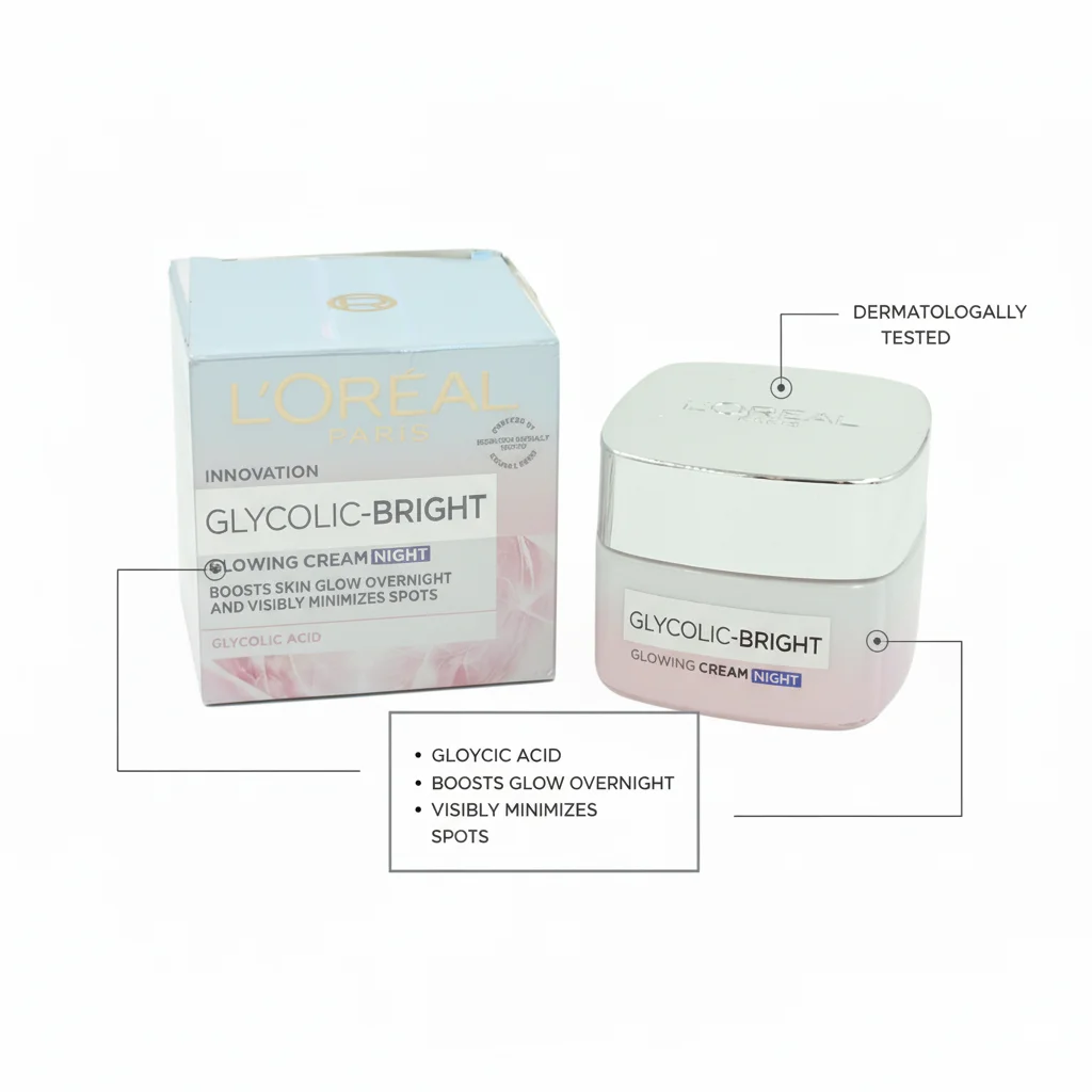 The L’Oréal Paris Glycolic-Bright Glowing Cream Night is an overnight treatment designed to enhance skin radiance and address hyperpigmentation issues like dark spots. This cream is formulated to work while you sleep, taking advantage of the skin’s natural nighttime repair cycle to promote a brighter, more even complexion by morning.