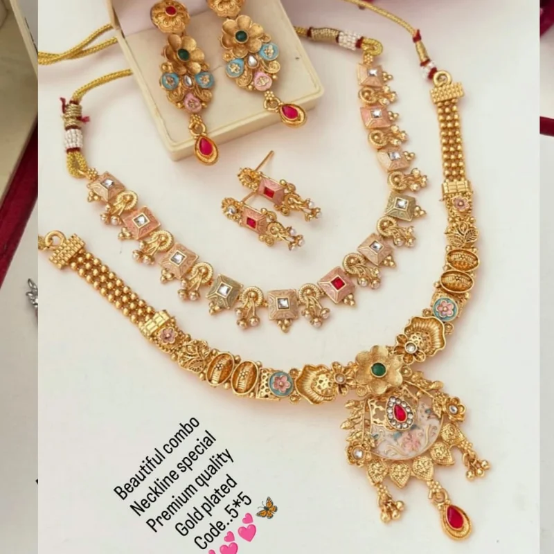Discover the perfect blend of tradition and modern elegance with this “Neckline Special” Premium Jewellery Combo. This curated set combines two distinct styles to create a unique, layered look suitable for brides, weddings, and festive celebrations.
