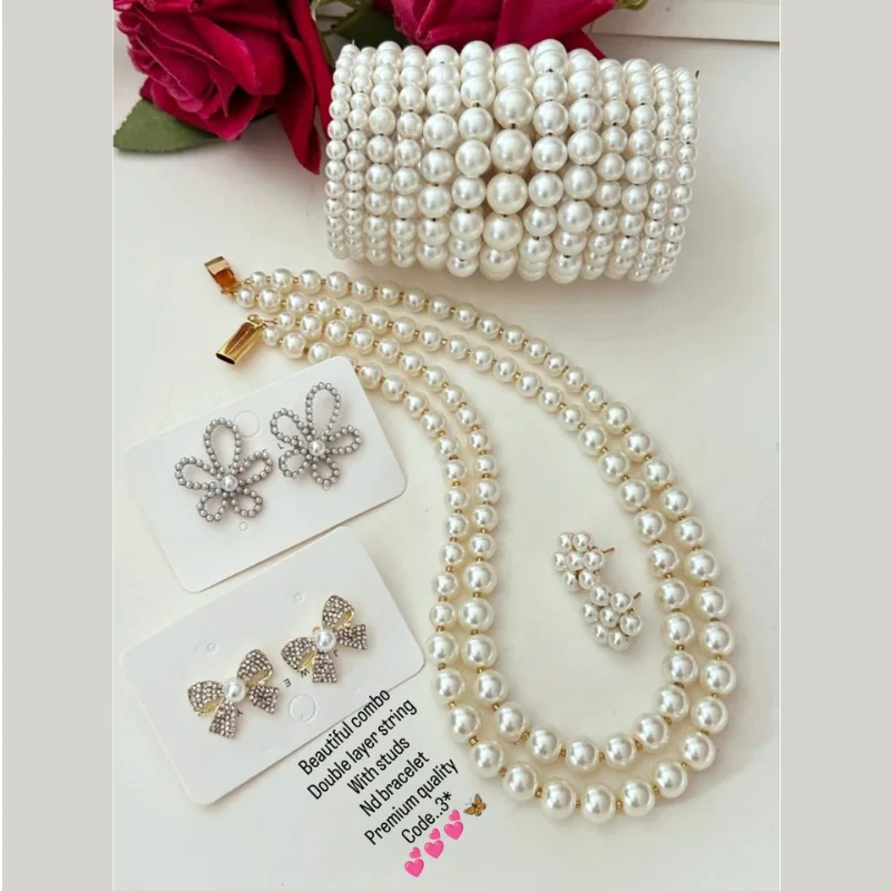 comprehensive 5-Piece Combo: Includes 1 double-strand necklace, 1 wide bracelet, and 3 unique pairs of earrings.