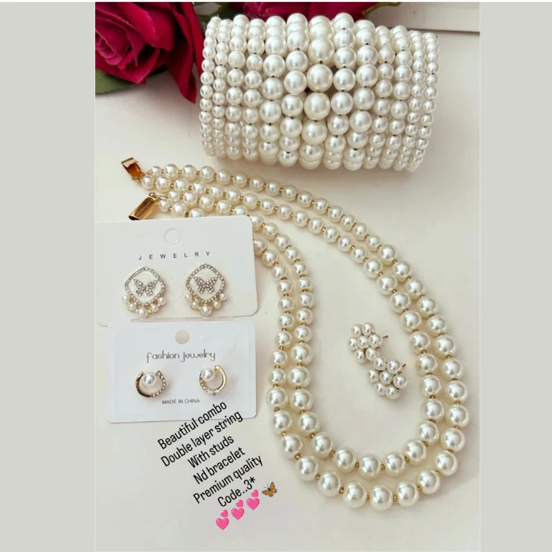 Elevate your accessory collection with this stunning “Premium Quality” pearl jewelry combo. Designed for the modern woman who loves classic elegance, this complete set features a sophisticated double-layer pearl necklace strung with delicate gold-tone accents that sits gracefully on the collarbone.