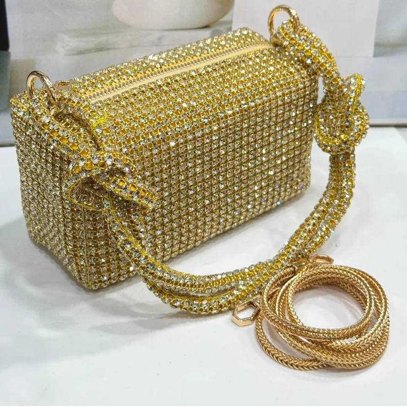 • Versatile Hardware: Finished with high-shine gold-tone rings and hardware to complement the crystal exterior.